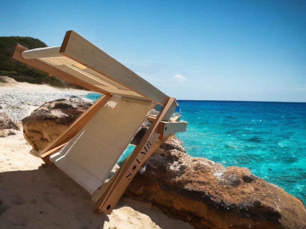 Upgrade your beach day with S☼lM8 – a comfortable, portable, and stylish headrest (or chair) with built-in sun protection.